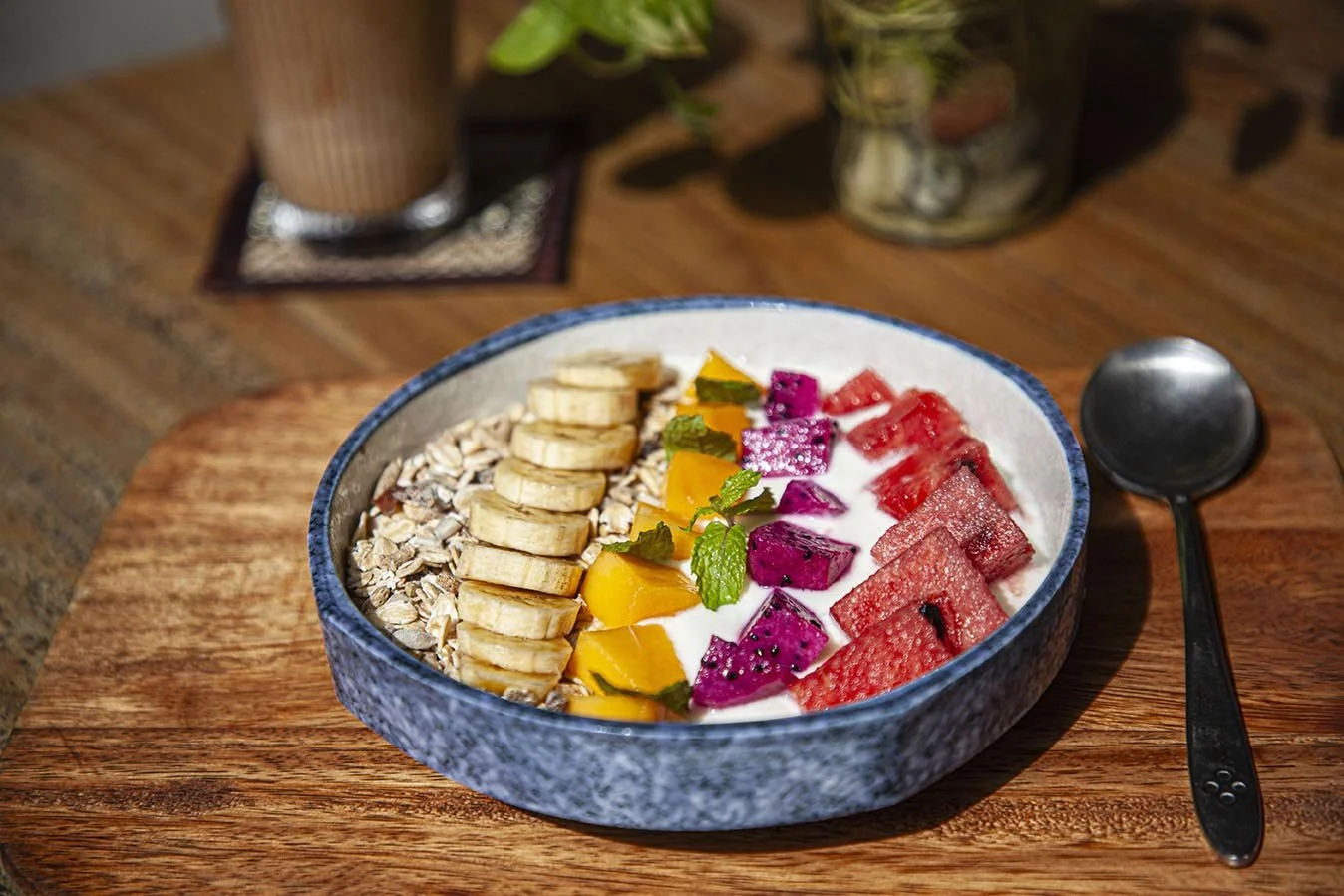 Yogurt, mango, dragon fruit, water melon, muesli